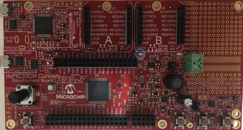 この後は割り込みを無効にするまで 1kHzの周期毎に「 void __attribute__((interrupt, no_auto_psv)) _T1Interrupt(void) 」のルーチンにジャンプし、LEDの状態を反転させた後通常のルーチンに戻ります。
