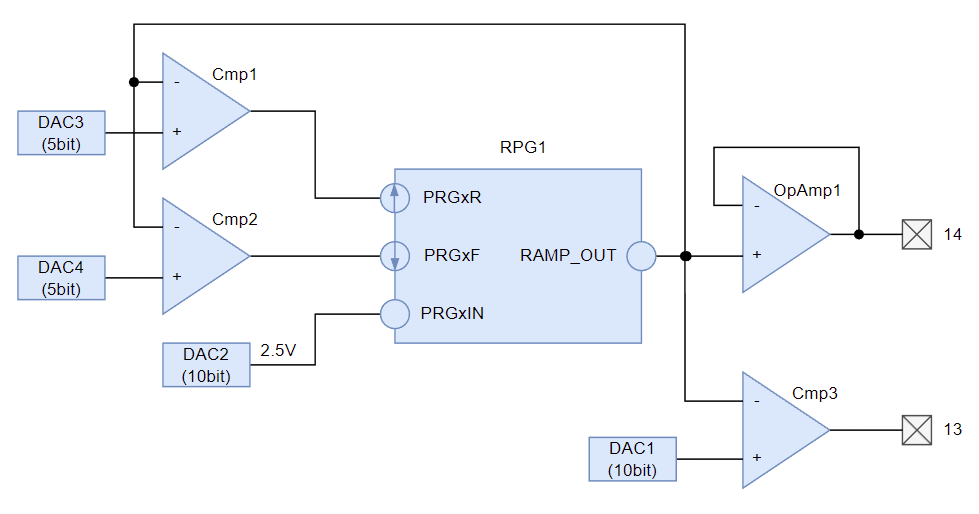 PRGとは Programmable Ramp Generatorの略でランプ波形を生成できる機能