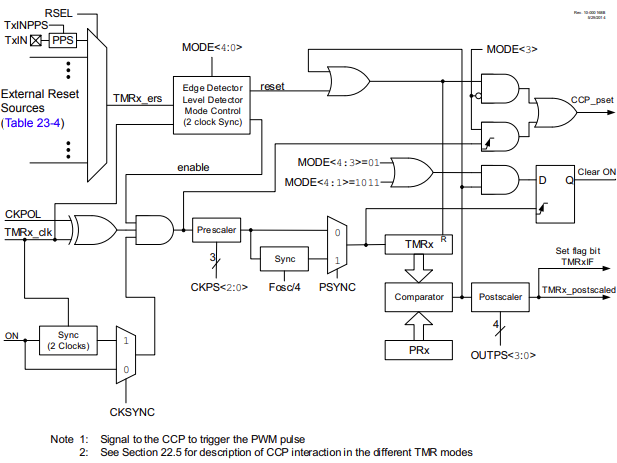 Timer2,4,6モジュールはスタート、ラン、フリーズ、リセット信号などでタイマの動きが制御可能な8bitタイマです。