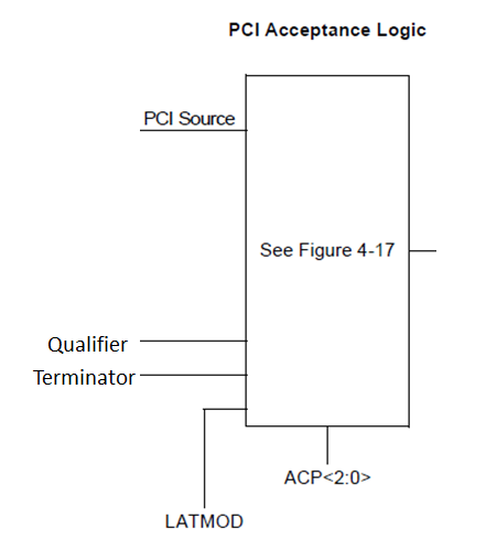 アクセプタンスロジックは①~④の入力信号を受け、どのようにPCIをアクティブにするかを決定するブロックです。