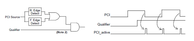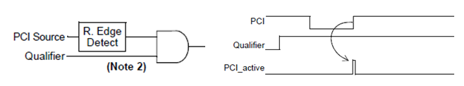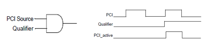 「PCIクオリファイアがアクティブ」かつ「PCI入力がアクティブ」の場合、PCIアクティブ信号がアサートされる。
