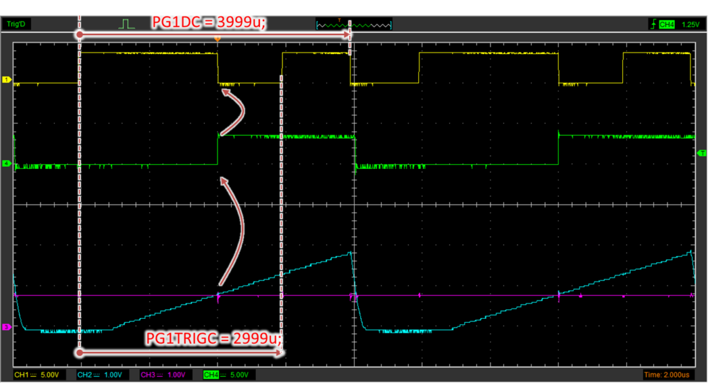 PGxyPCILbits.PSYNCPCIソースをEOC(End of cycle)に同期させる