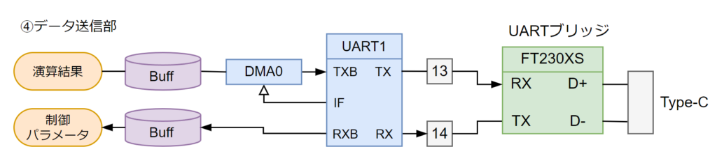 演算した値はUSB-UartブリッジICを介し、PCへ送信します。