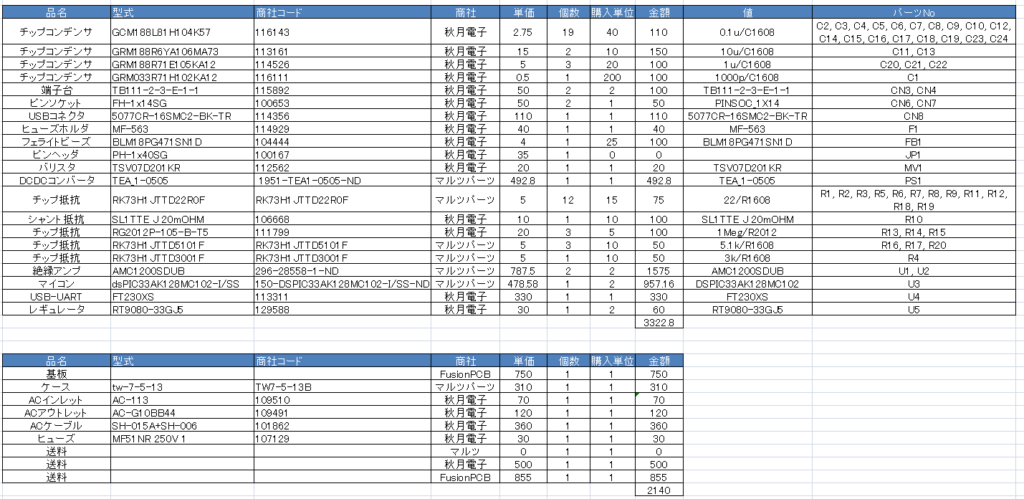 部品表を以下に示します。