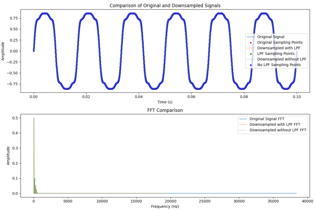 通常、サンプリング周波数を変更するマルチサンプリングレート変換処理には、アップサンプリング(サンプル数の増加)とダウンサンプリング(サンプル数の削減)の両方を使用します。これにより、例えば2.5倍といった非整数の間引き率も実現可能ですが、実際にはいくつかの考慮すべき点があります。