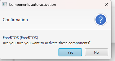 ④FreeRTOS上で動作させるか聞かれるので「No」をクリック