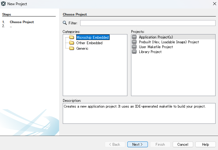 ②Microchip Embeddedを選択し「NEXT」ボタンをクリック