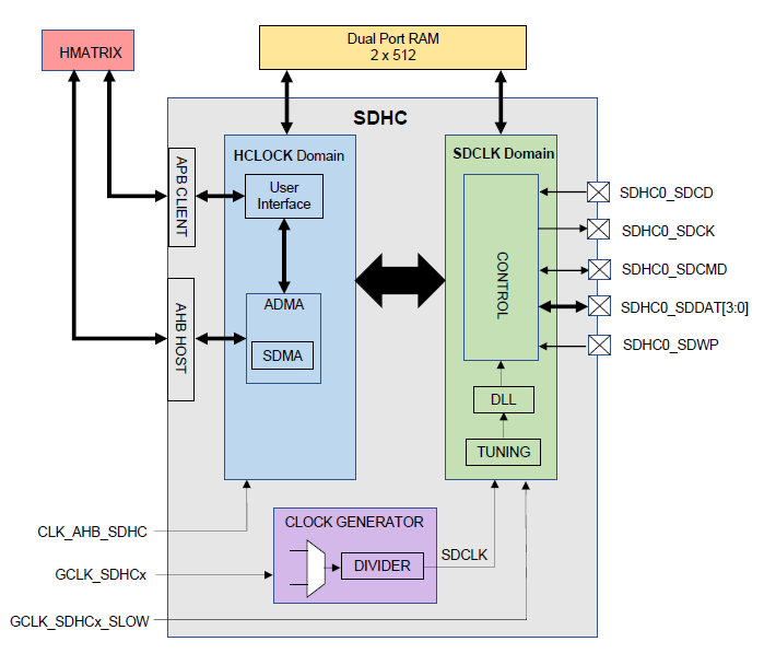 以下にPIC32CZ CAシリーズのSDHCモジュールブロック図を示します