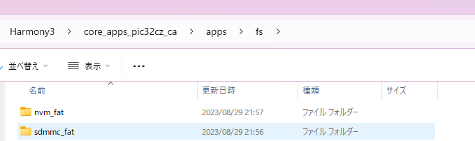 Harmony3プロジェクト内にある「sdmmc_fat」フォルダを任意の作業用フォルダへコピーします。